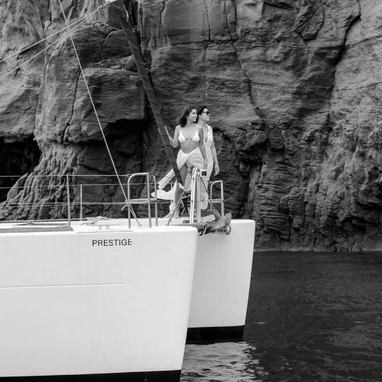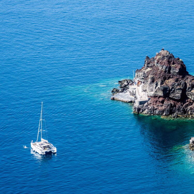 Book exclusively for your family, group; team etc. our luxurious Catamaran that can carry up to 18 persons for an amazing and unforgettable morning private cruise. Visit unique beach sites, travel along the caldera cliffs; dive at the Volcano’s hot springs and enjoy swimming and snorkeling in the deep blue Aegean Sea.