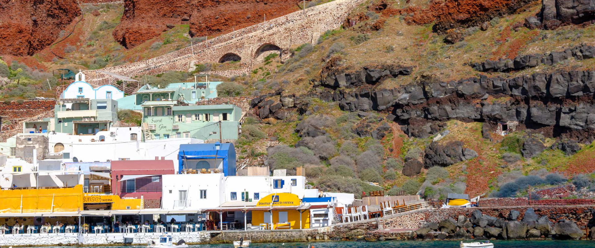 the magical beauty of Santorini’s island under the Aegean sun by cruising along the caldera & the volcanic islands.