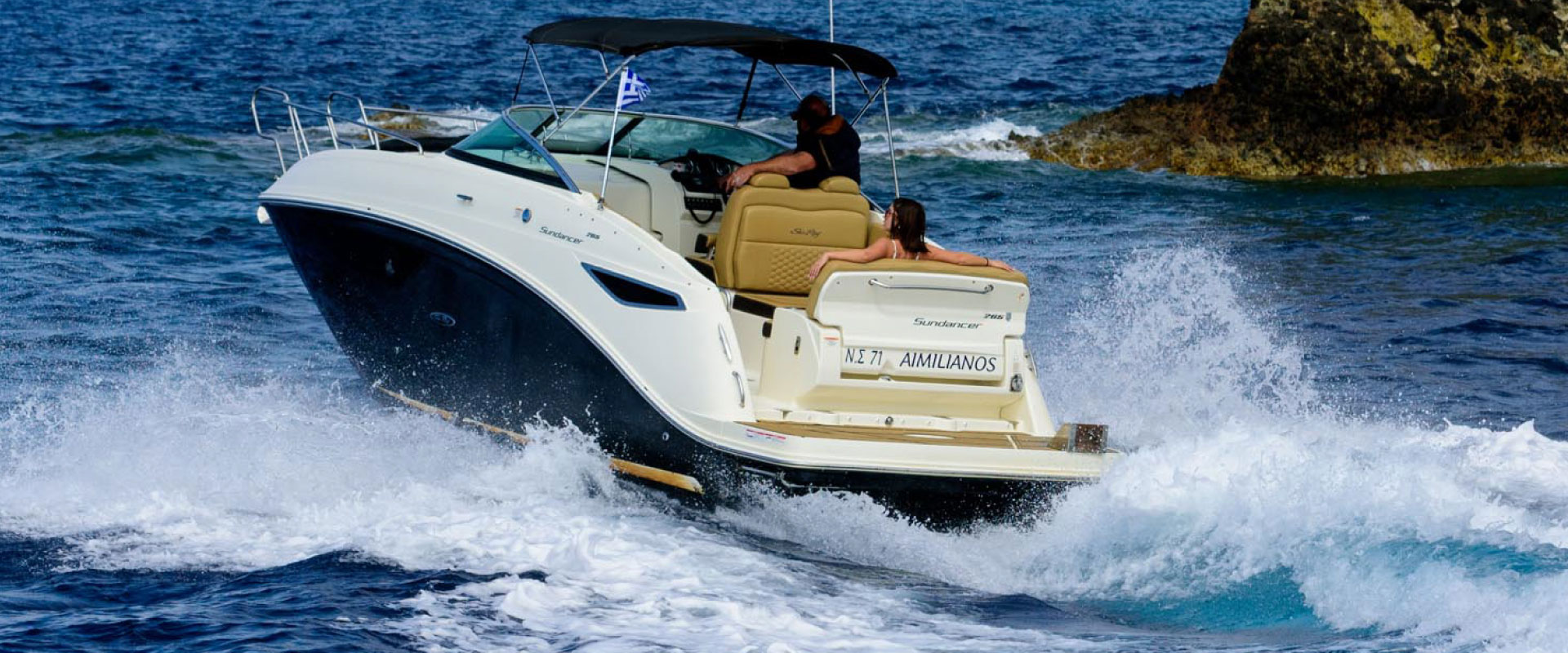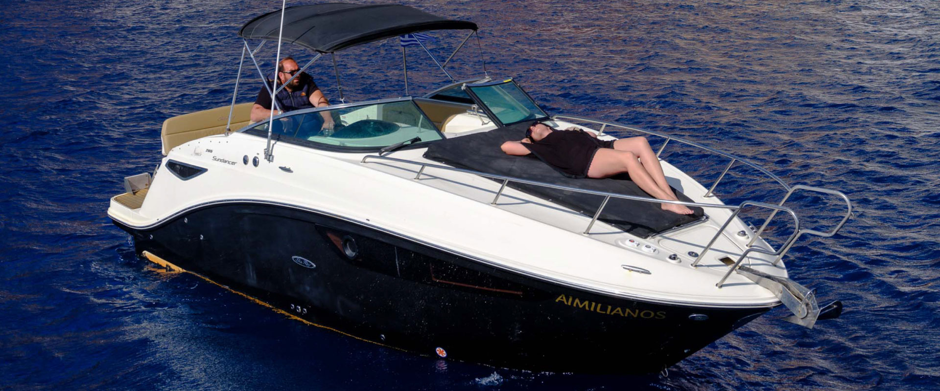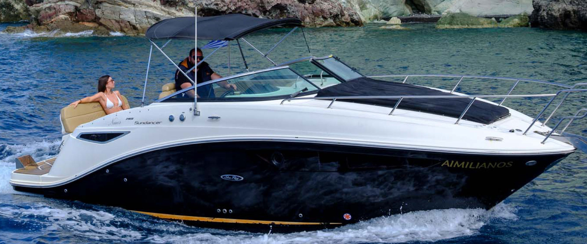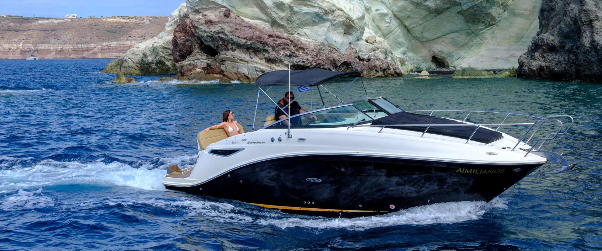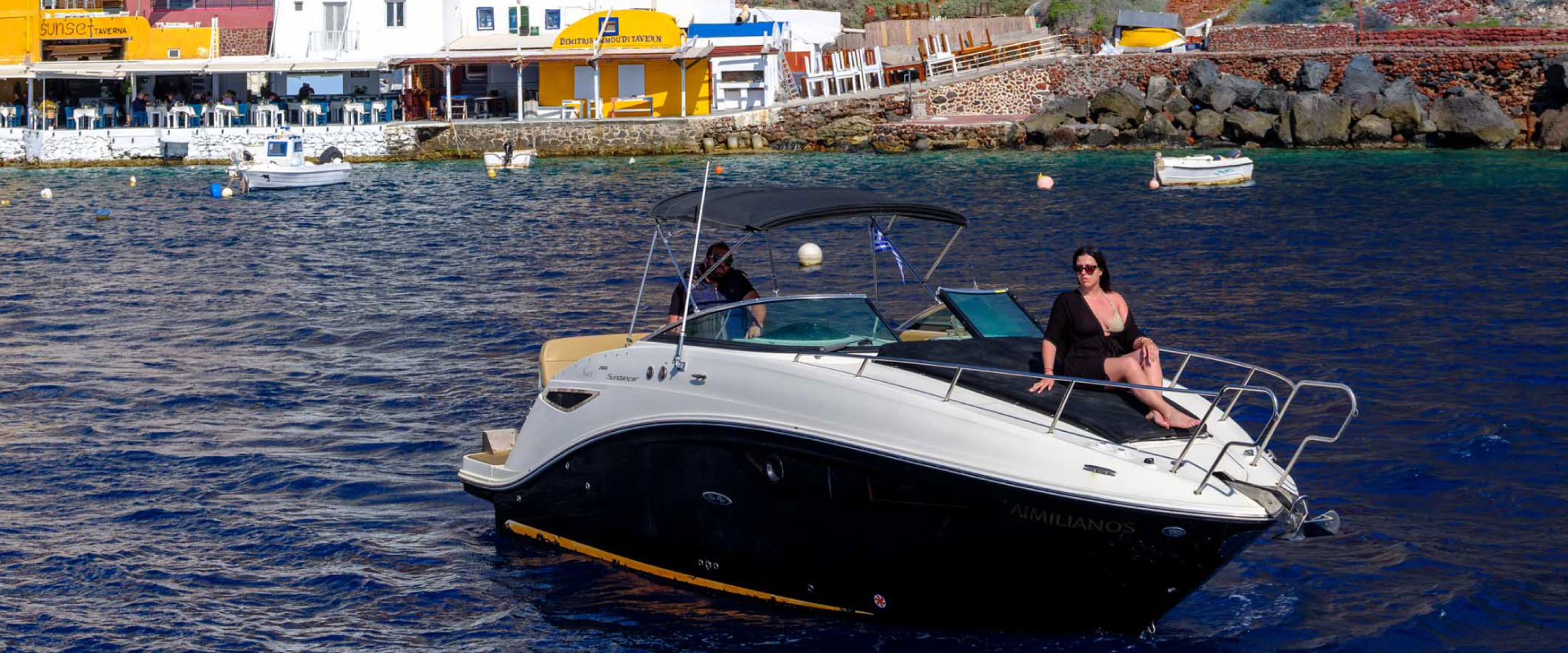Check below our Sea Ray 265 Sundancer photo gallery and contact us to book an amazing Santorini cruise!